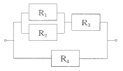 1-1-1 下図のような系において、各構成要素の信頼度が、R1=0.9、R2=0.8、R3=0.5、R4=0.7のとき、この系の信頼度を求め、次の中から最も近いものを選べ。