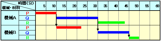 1-2-3 機械A,Bを用いて材料P,Q,Rを加工したい。材料はいずれも機械A,Bの順に加工しなければならない。
