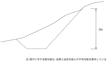 - 模式図に示すような切土による道路の計画がある。予備調査段階では標準法面勾配で設計されている。以下の問いに答えよ。なお、解答は各問いにつき1枚程度とする。