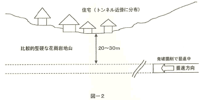 - 土被りの小さい未固結の地山で、掘削面積60m2程度のトンネルを施エしていたが、地権者との協議の結果トンネル直上の家屋(2階建て)の移転が困難となった。この区間を引き続きNATM工法で安全に施工するために設計・施工上配慮すべき事項について述べ上。なお、地下水の影響については考慮しないものとする。