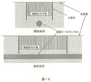 - 都市部において、図-6に示すように掘削床付け面下方に既設シールドトンネルが存在する場所で大規模開削工事を行う。この場合の掘削に伴うリバウンド予測方法として、簡易予測法を2つ説明せよ、また、既設シールドトンネルヘの掘削に伴う影響を軽減させる対策を記載するとともに、影響予測を精度よく評価、検証する方法について述べよ。