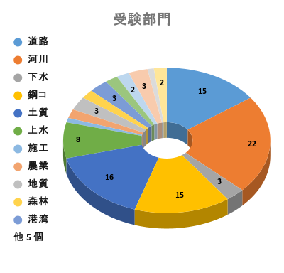 - 最も多かったのは河川砂防部門、次いで土質基礎、そして道路と鋼コンでした。