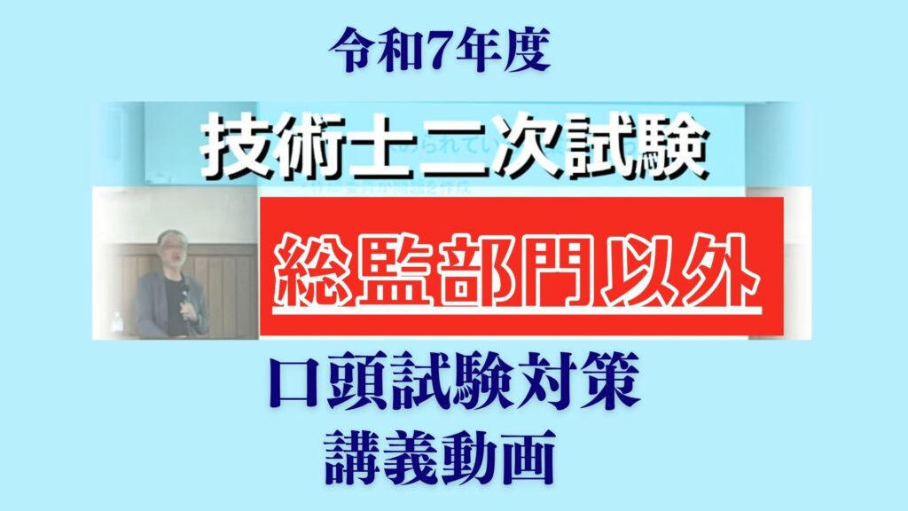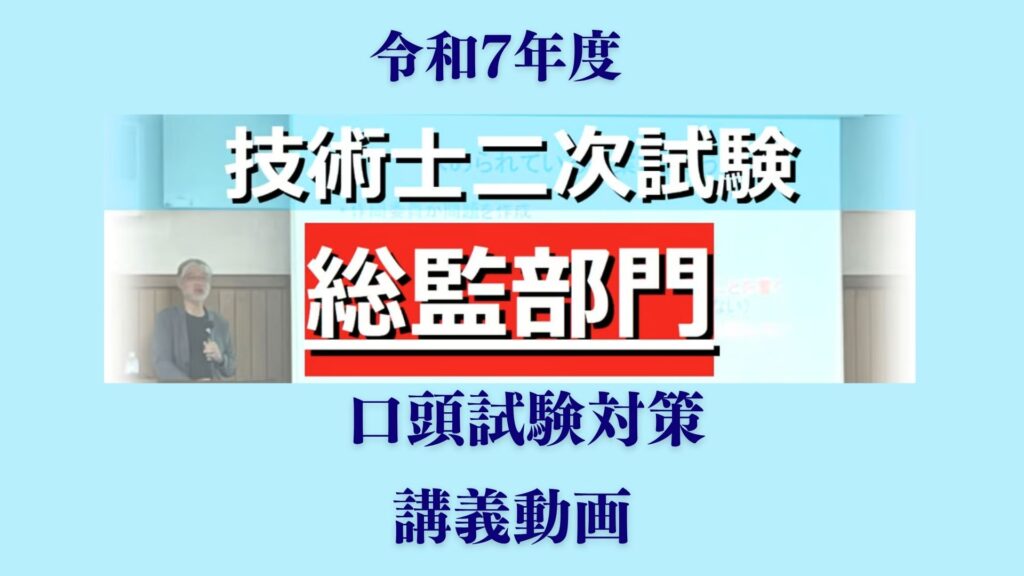 2025年4月20日東京での技術士第二次試験筆記試験対策セミナーの講義動画(YouTube動画、161分)とセミナーテキストのセットです。